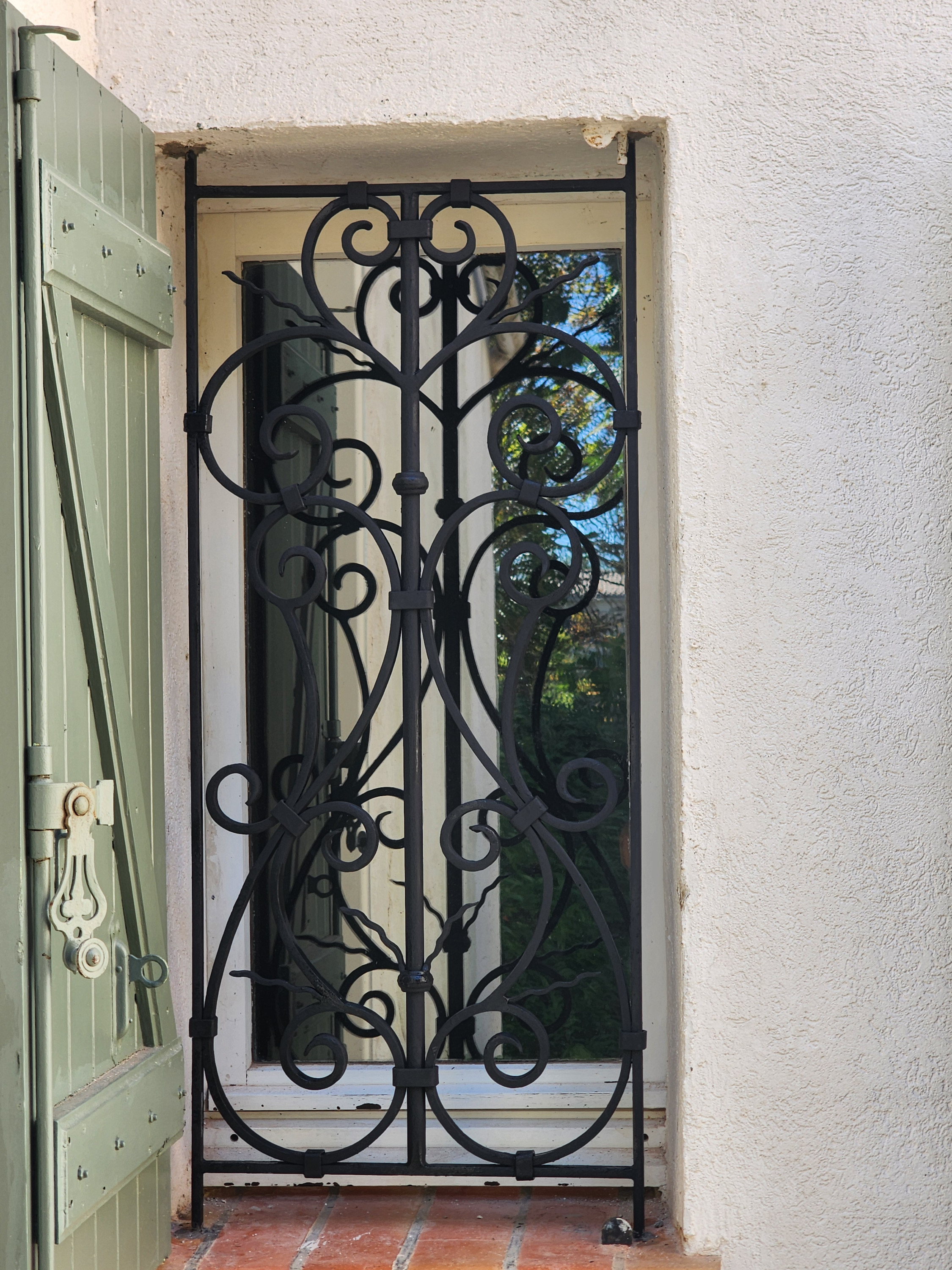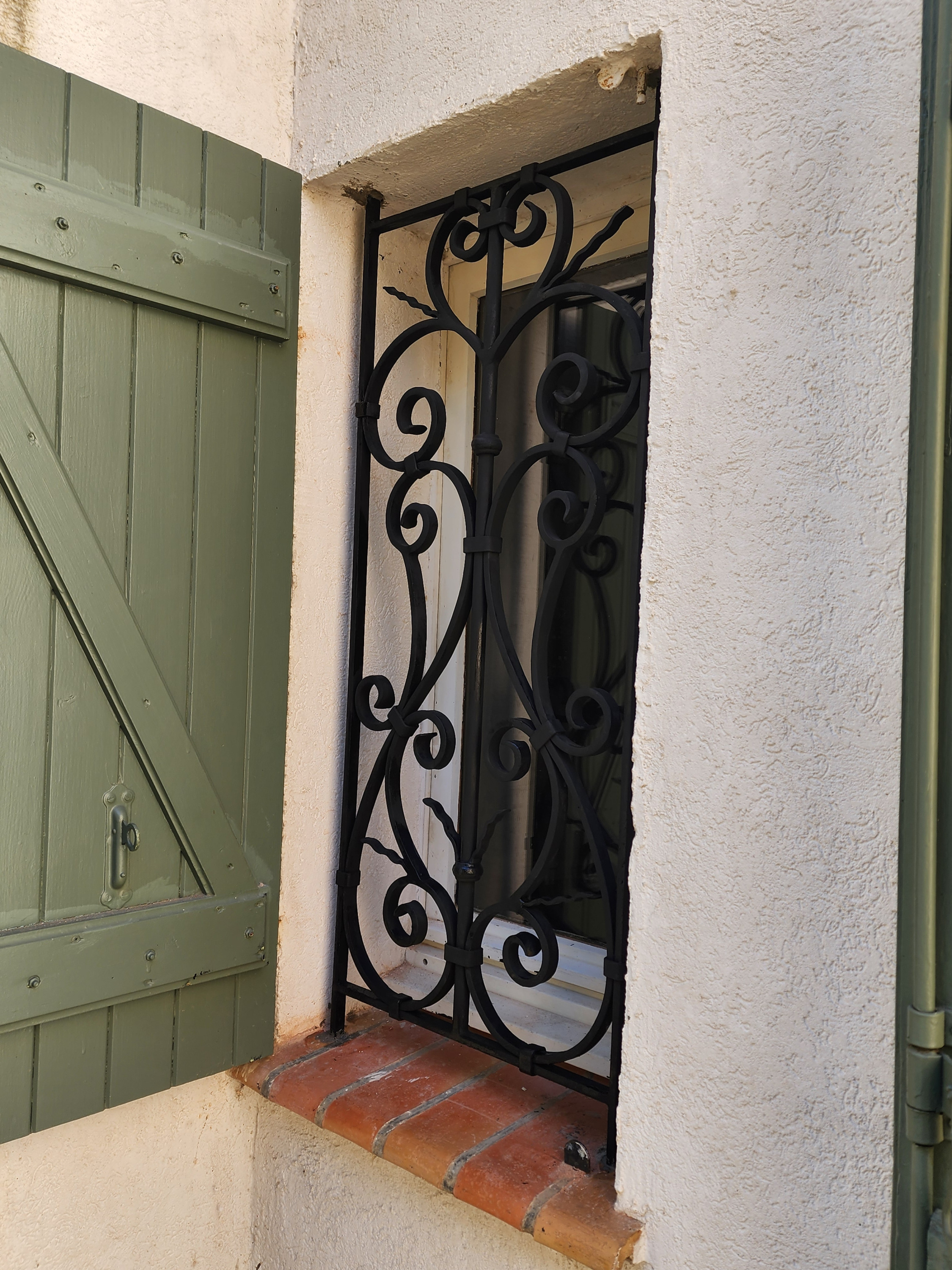 Grille de défense de fenêtre avec volutes faite main
